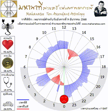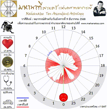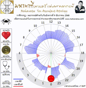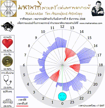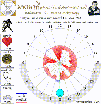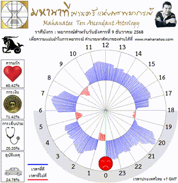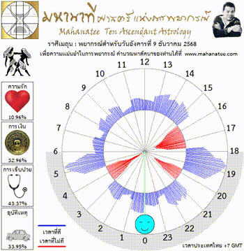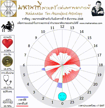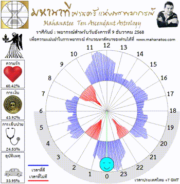 คำนวณหาลัคนาที่ถูกต้องของท่านได้ที่ https://www.mahanatee.com/ และ พยากรณ์พื้นดวงชะตาฟรี ไม่คิดค่าใช้จ่าย แผนภูมิและพยากรณ์ 12 ราศี สำหรับ วันอังคารที่ 9 ธันวาคม 2568 เลื่อนไปหาราศีที่ต้องการ และเปิดเสียงด้วย ** หมายเหตุ คลิปจะเล่นได้ 3 วันก่อนวันที่พยากรณ์