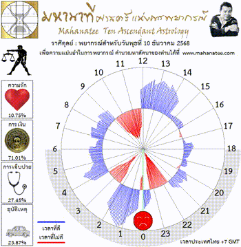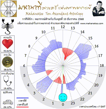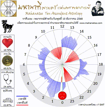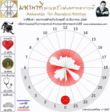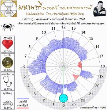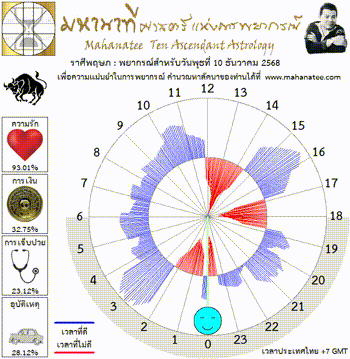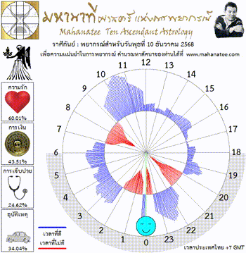 คำนวณหาลัคนาที่ถูกต้องของท่านได้ที่ https://www.mahanatee.com/ และ พยากรณ์พื้นดวงชะตาฟรี ไม่คิดค่าใช้จ่าย แผนภูมิและพยากรณ์ 12 ราศี สำหรับ วันพุธที่ 10 ธันวาคม 2568 เลื่อนไปหาราศีที่ต้องการ และเปิดเสียงด้วย ** หมายเหตุ คลิปจะเล่นได้ 3 วันก่อนวันที่พยากรณ์