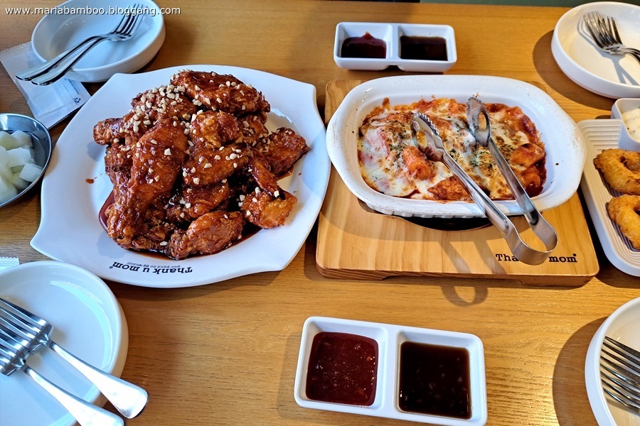 ส่วนร้านกินฟรีนี่ ไก่ทอดราดซอส ดูชุ่มฉ่ำน่ากินมากกกเลยครับ สงสัยว่ากลับจากเกาหลีเที่ยวนี้ น้ำหนักจะขึ้นมั้ยเอ่ยนะครับ แฮร่ 555