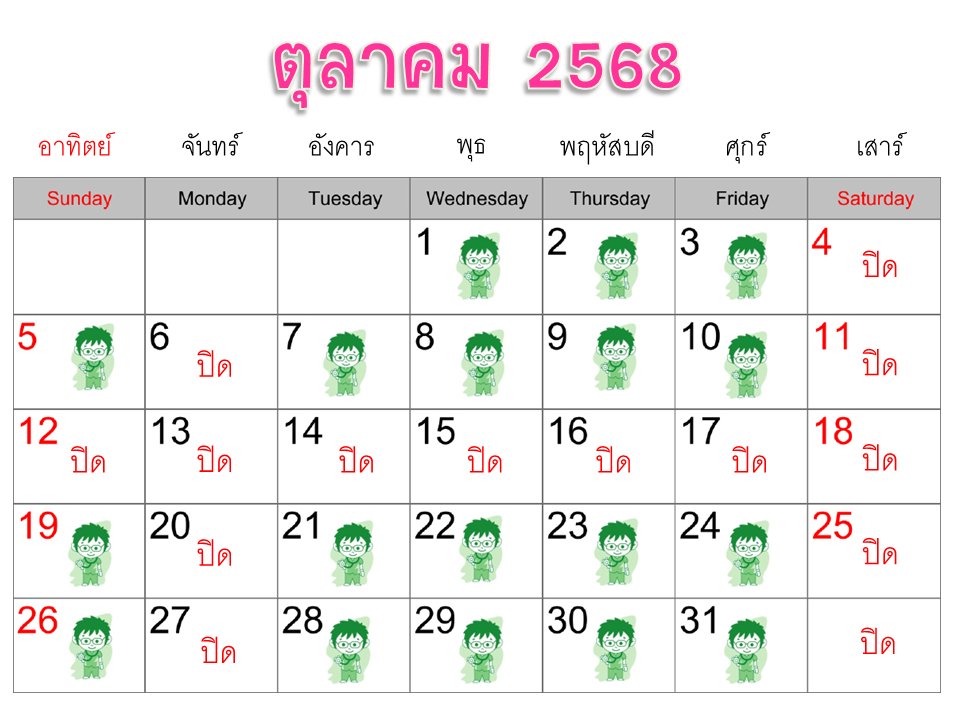 **เวลาทำการ*** [วันอาทิตย์ 09.00–13.00 น.] [วันอังคาร–ศุกร์ 18.00–20.00 น.] ***ปิดทุกวันจันทร์และวันเสาร์***
