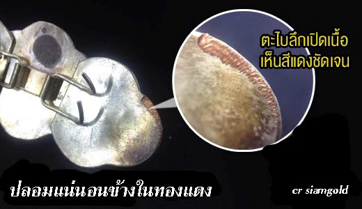 6.ใช้การขูดดูเนื้อเงินแต่ร้านค้าส่วน ใหญ่ไม่ยอมให้ขูดเนื่องจากจะทำให้ ชิ้นงานเป็นรอย ใช้ตะไบขูดด้านหลังของชิ้นงานหรือด้านที่ซ่อน หลบมุมอยู่เพื่อเปิดดูเนื้อเงินข้าง ในหากมีสีแดงก็แสดงว่ามีเนื้อทองแดงผสมอยู่ใน ปริมาณมาก หรือเป็นงานชุบ มาแต่ถ้ามีสีขาวเหมือนเงินต้องใช้วิธีอื่นทดสอบต่อไป ใช้การฝนหินลองทองเพื่อ สังเกตดูสีของเศษเนื้อเงินที่ติดกับหินหากมีสีแดงก็ เหมือนเดิมคือมีทองแดงผสม อยู่ในปริมาณมากหากเป็นสีขาวเงินก็มีความน่าจะเป็น เงินแท้ ยังไม่ฟันธงเพราะ อาจมีการผสมเนื้อนิกเกิ้ลที่มีความเงาและมีเนื้อสีขาว เข้าไปด้วยทำให้ตรวจสอบ ได้ยากต้องดูการตรวจสอบวิธีอื่นๆประกอบด้วย