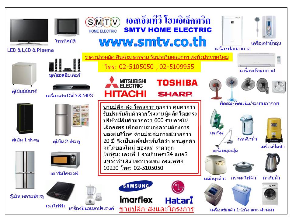 | เครื่องใช้ไฟฟ้าภายในบ้านราคาพิเศษ มั่นใจได้ TOSHIBA LG SAMSUNG SHARP MITSUBISHI HATARI etc. tossapon_joe [20 ก.ค. 2555 09:16:42 น.]