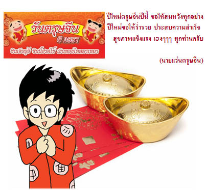|  | ปีใหม่ตรุษจีนปีนี้ ขอให้สมหวังทุกอย่าง ตี๋2555 [1 ก.พ. 2557 10:34:53 น.]