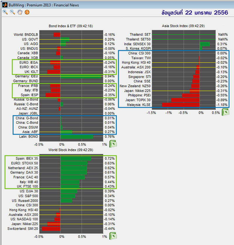 |  | Update!! ภาพรวมเศรษฐกิจโลก>> ตลาดหุ้นไทยยังสดใส!! Top Money [15 ม.ค. 2556 10:53:20 น.]
