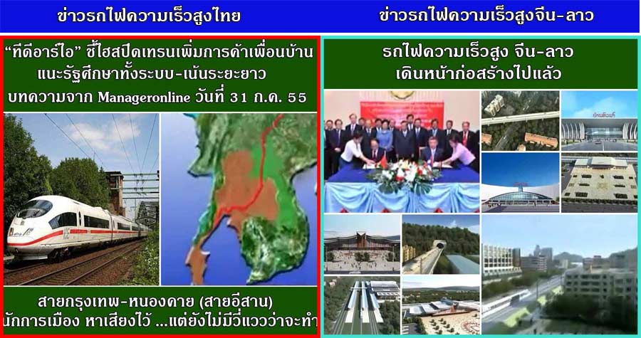 |  | ทีดีอาร์ไอ ชี้ไฮสปีดเทรนเพิ่มการค้าเพื่อนบ้าน แนะรัฐศึกษาทั้งระบบ-เน้นระยะยาว เที่ยวรอบเกาะรัตนโกสินทร์ [31 ก.ค. 2555 18:16:54 น.]