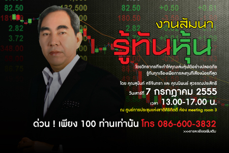 |  | สัมมนานาหุ้นดีๆ ของคุณสุนันท์ ศรีจันทรา kosak [20 มิ.ย. 2555 11:55:01 น.]