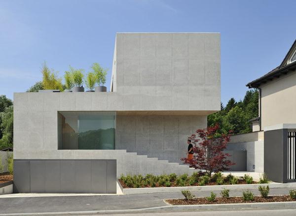แบบบ้านฟรี บ้านสมัยใหม่ มีโรงจอดรถไว้ในสวนหน้าบ้าน