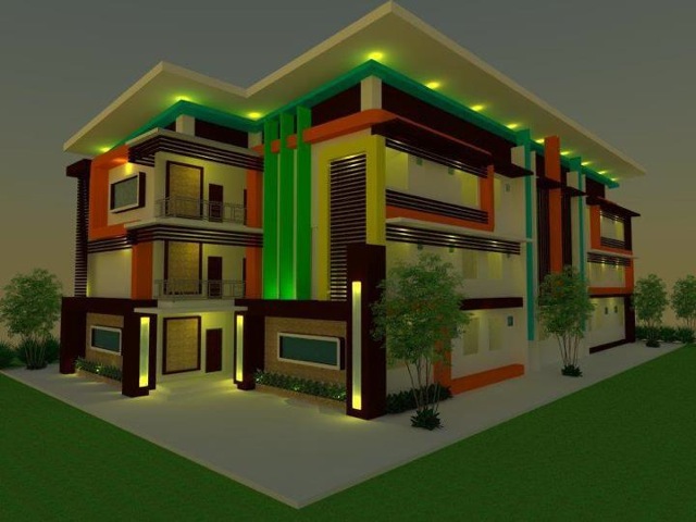 แบบบ้านโมเดิร์น 3 ชั้น ชั้นล่างทำเป็นโรงจอดรถ ชั้นบนมีระเบียงหน้าบ้าน
