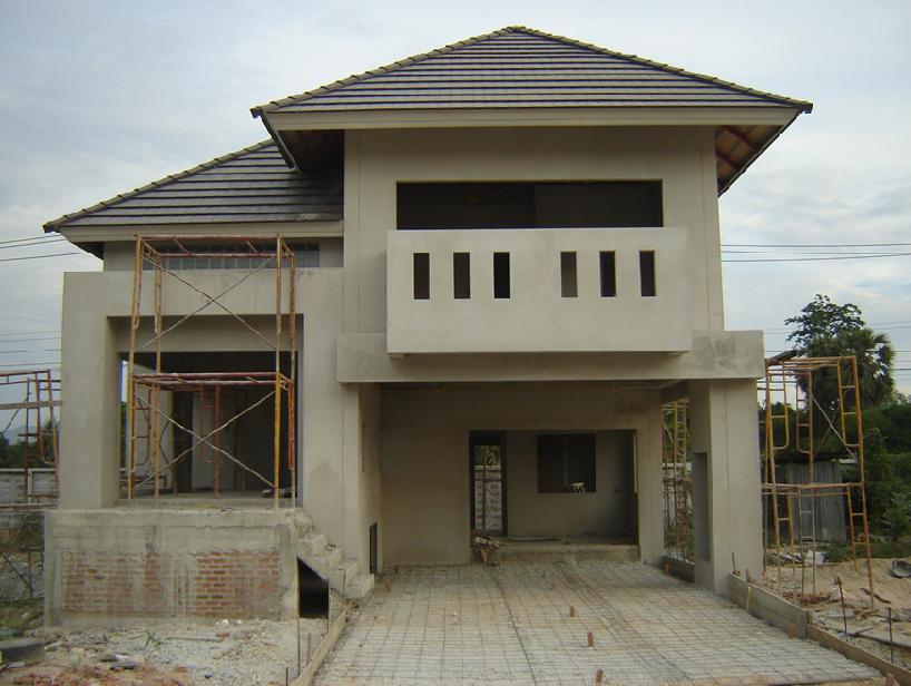 แบบบ้านปูน ชั้นเดียว ลักษณะรูปตัว L สร้างห้องนอนแยกออกจากตัวบ้าน