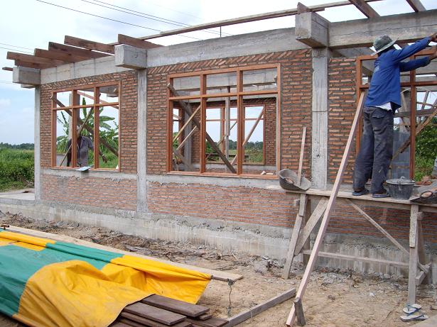 ก่ออิฐ ติดวงกบเกือบเสร็จแล้ว