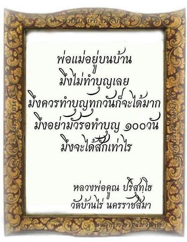 |  | "พ่อแม่อยู่บนบ้าน มึงไม่ทำบุญเลย" (หลวงพ่อคูณ) sitcomthai [16 มิ.ย. 2555 11:33:40 น.]