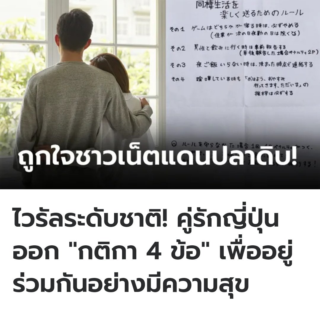 ที่ญี่ปุ่น คู่รักได้ทำสัญญากัน 4 ข้อ เพื่อการอยู่ร่วมกันอย่างมีความสุข