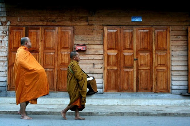 "อรุณสวัสดิ์" พระ เด็ก ผู้หญิง ดอกไม้
