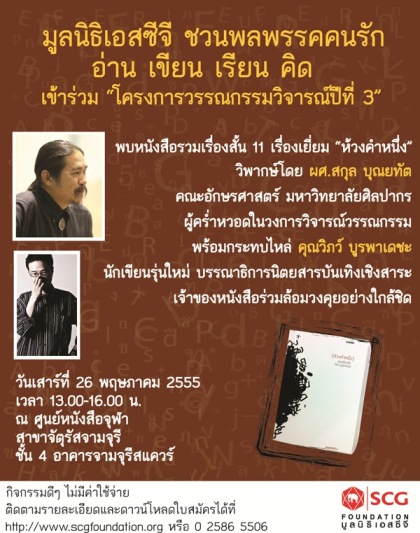 เชิญผู้สนใจร่วมกิจกรรมวรรณกรรมวิจารณ์ 26 พ.ค. 2555
