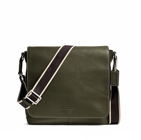 กระเป๋าผู้ชายสะพาย COACH รุ่น HERITAGE LEATHER MAP BAG F70555 Silver Green