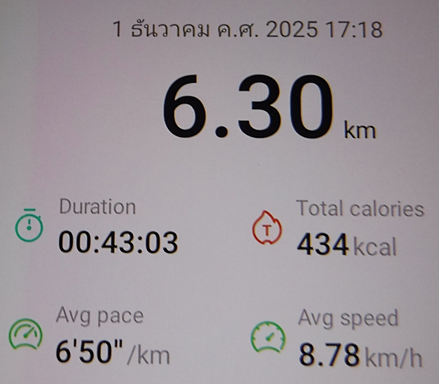 |  | วิ่งข้างบ้าน 16,17,18,19,20,22 พ.ย. 2568 สองแผ่นดิน [29 พ.ย. 2568 22:17:38 น.]