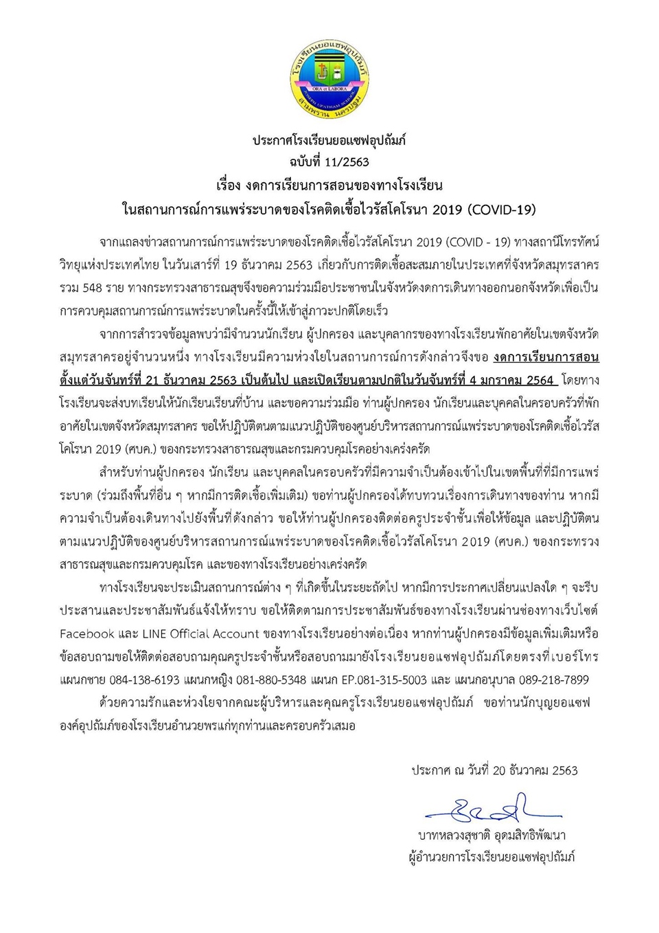 21 ธ.ค. 63 ร.ร. ปิด โควิดเป็นเหตุ
