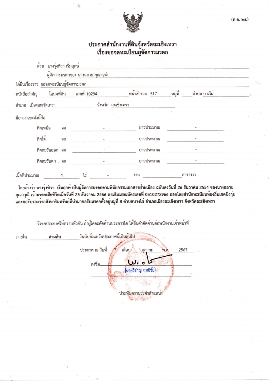 นางรุ่งทิวา เริ่มฤกษ์ กับบทบาทผู้จัดการมรดก