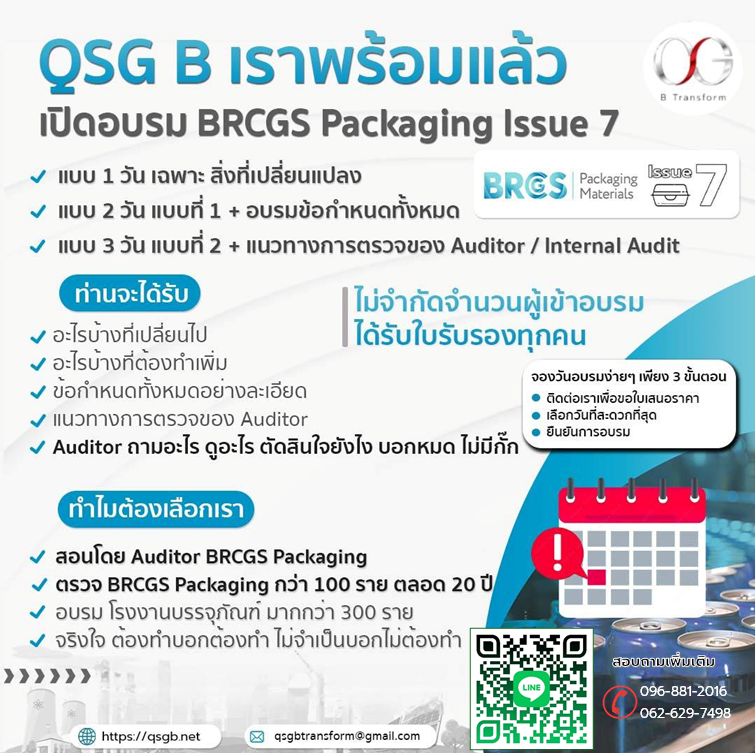 🔥 เปิดแล้ว! หลักสูตรอบรม BRCGS Packaging Issue 7 ใหม่ล่าสุด!! 🔥