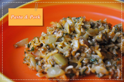 อาหารมื้อนี้ ชื่อ "ผัดพาสต้าใส่หมู"