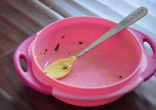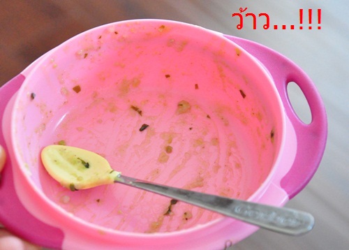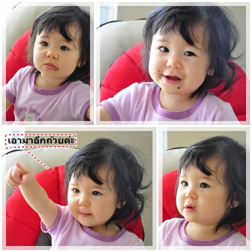 ปิ่นมุกคงจะหิว หม่ำเอาๆ จน 2-3 คำสุดท้ายคงท้องตรึงแล้ว คลานไปเล่น เรียกเท่าไหร่ ก็ไม่กลับมา จนต้องตามไปป้อน คำแรกๆ ร้องจะกินๆๆ เลยทีเดียว อร่อยหรือเปล่าหนอ มัมมี๊ไม่กล้าชิมค่ะ อิอิ