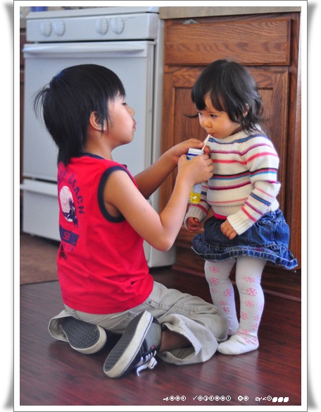 ลองให้หนูกินครั้งแรก แต่พี่หนูอยากกิน ก็เลยให้กินก่อน ต่อมาหนูก็กิน และกินใหญ่เลย สงสัยอร่อย มัมมี๊เอารสกล้วยหอมมา เพราะรู้ว่าหนูชอบทานกล้วย