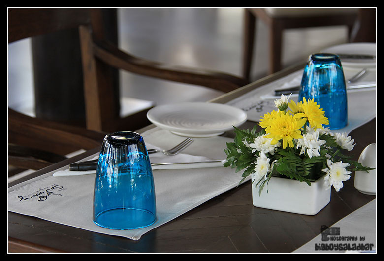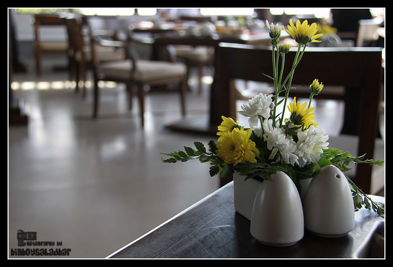 เอารูปดอกไม้บนโต๊ะไปแทนนะครับ ถ้าแพนกล้องมาทางขวาก็จะเห็นอาหารเต็มโต๊ะ มันยั่ว(ผมเอง)อ่ะ 555
