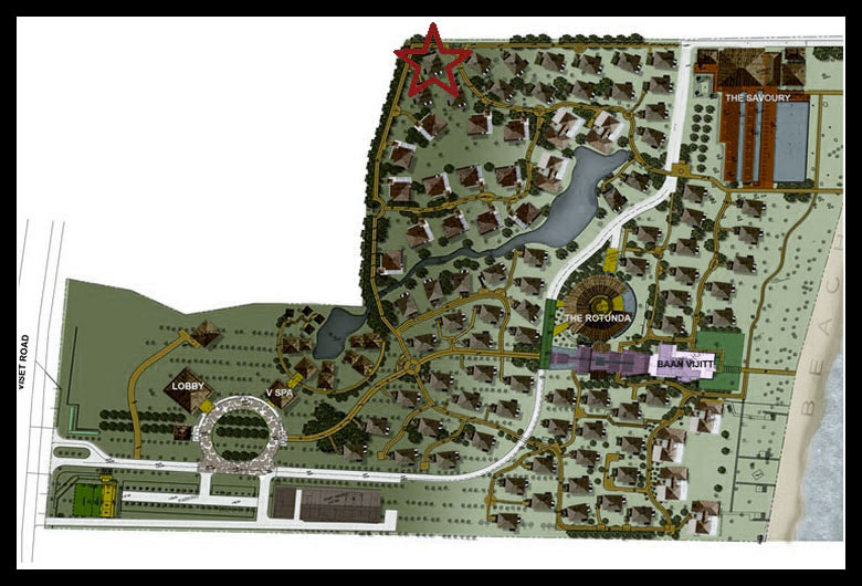 ด้วยความที่รีสอร์ทนี้ วิลล่าแต่ละหลังอยู่ติดๆกันการจะเดินไปไหนเลยอาจจะต้องใช้แผนที่นี้ช่วยเหมือนกัน (แผนที่นี้จะมีอยู่หลายจุดเหมือนกันในรีสอร์ทครับ)