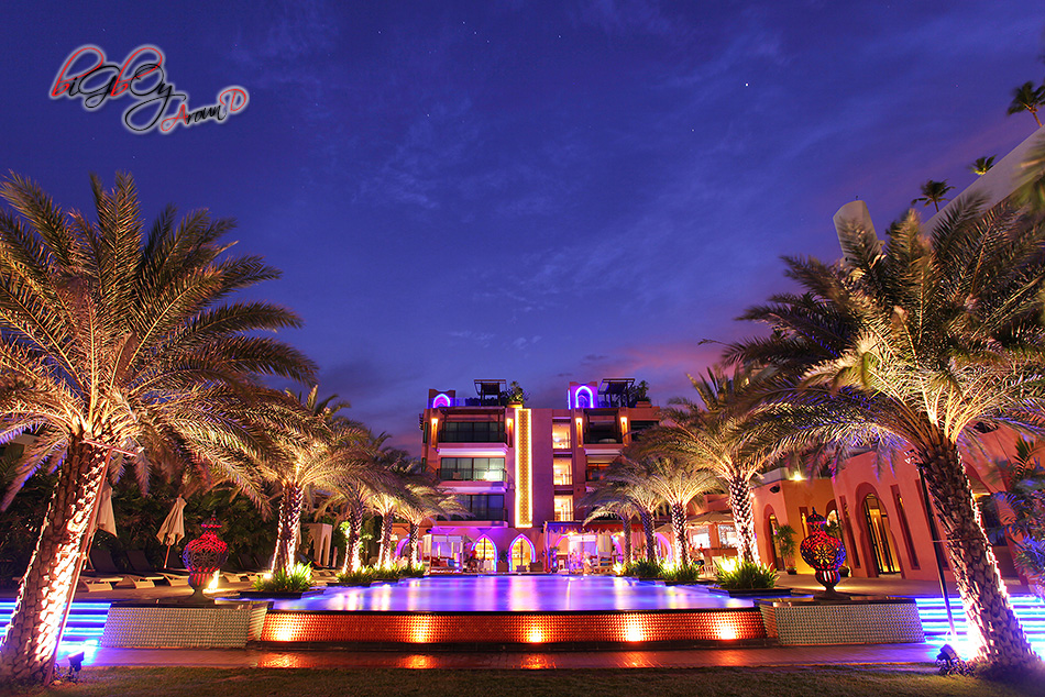 Al Janna Bar ที่อยู่ด้านหน้าหาด กลางคืนเปิดไฟสวยเชียวฮะ แถมเป็นไฟที่เปลี่ยนสีไปเรื่อยๆอีกตะหาก