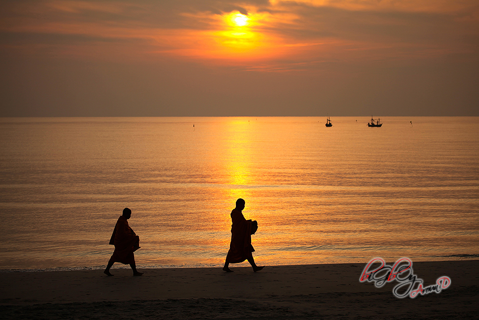 ภาพที่คนแถวๆนี้คงเห็นกันชินตา แต่คนกรุงแบบเราคงหาโอกาสเห็นได้ยากกับการเดินบิณฑบาตริมชายหาดของพระภิกษุที่นี่