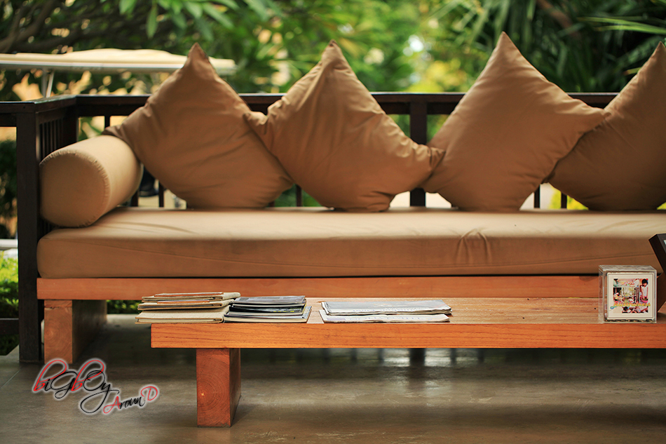 ด้านนอกระเบียงกว้างมากฮะ มีเตียงนอน โต๊ะสนาม และ Daybed ให้ด้วย