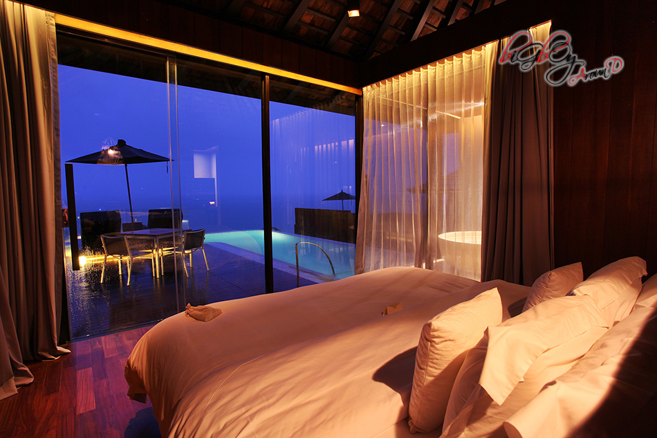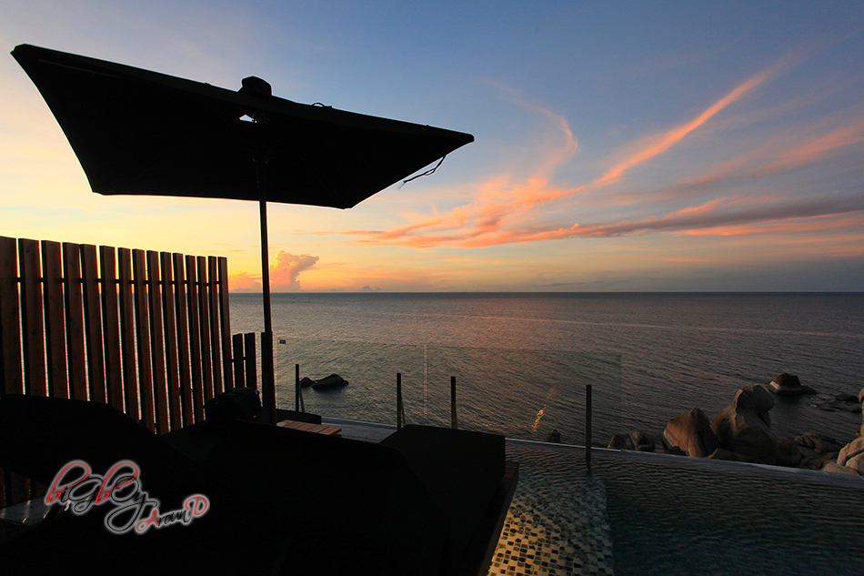 วิลล่านี้ไม่เห็นพระอาทิตย์จากปลายเตียงครับแต่ก็ยังพอมองเห็นจากระเบียงห้อง