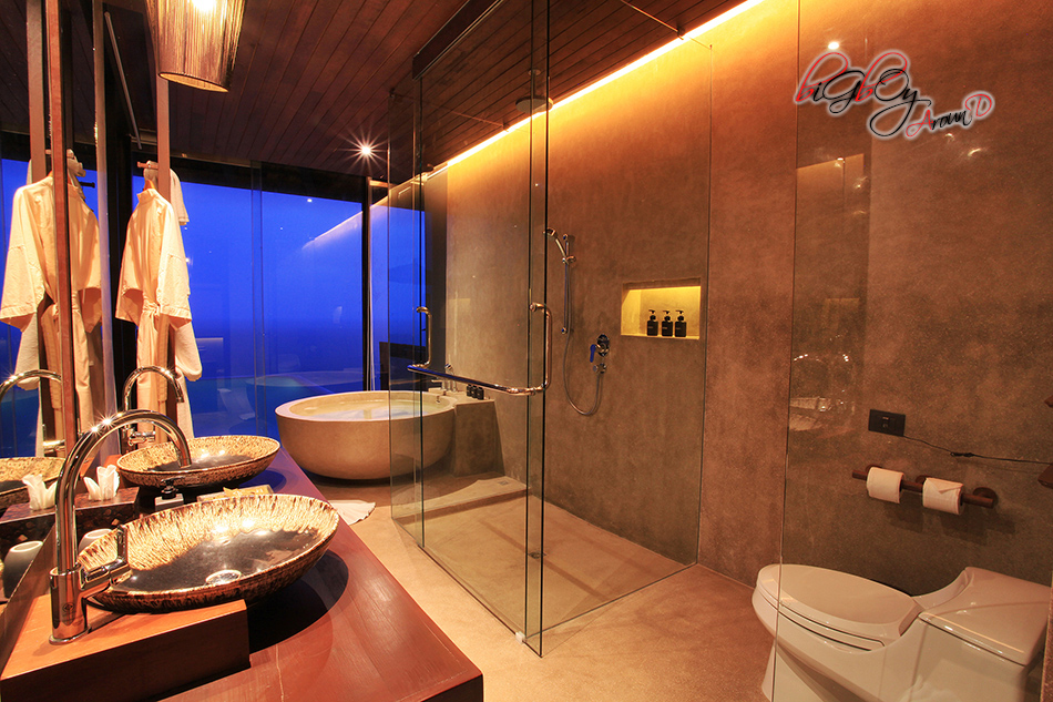 ห้องน้ำใหญ่ทีเดียว ห้องอาบน้ำแยกส่วนเปียกและมีอ่างน้ำให้แช่ด้วยครับ เราสามารถเดินออกจากห้องน้ำลง pool ด้านหน้าได้เลยใช่กันฮะ