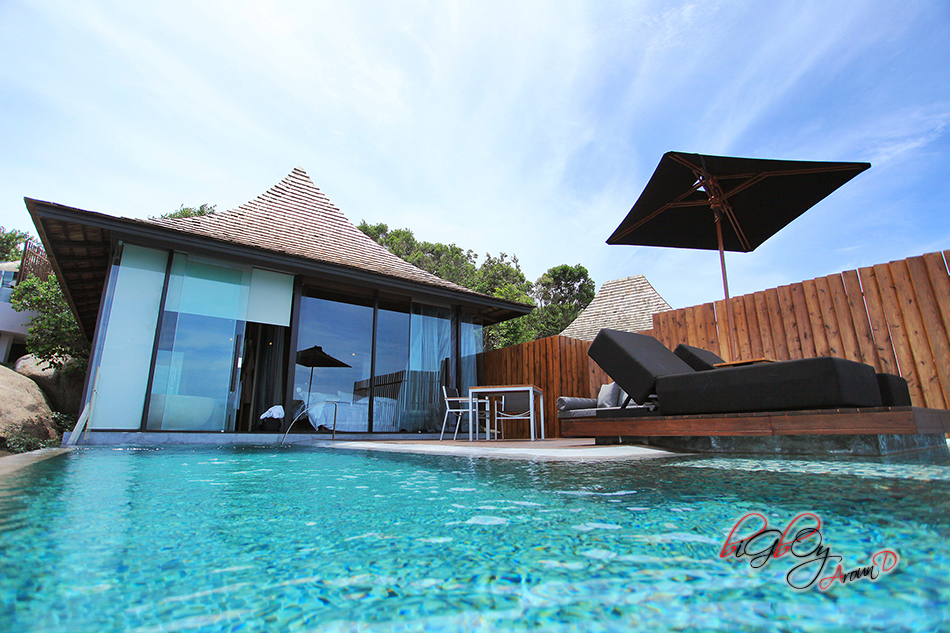 วิลล่าฝั่งนี้มีทั้งหมด 27 หลังครับ แต่ที่เสร็จเรียบร้อยแล้วตอนนี้คือหลังที่อยู่หน้าสุด ติดทะเลที่สุด ซึ่งก็เรียกว่า "Ocean Front Pool Villa" ซึ่งมีทั้งหมด 9 หลัง