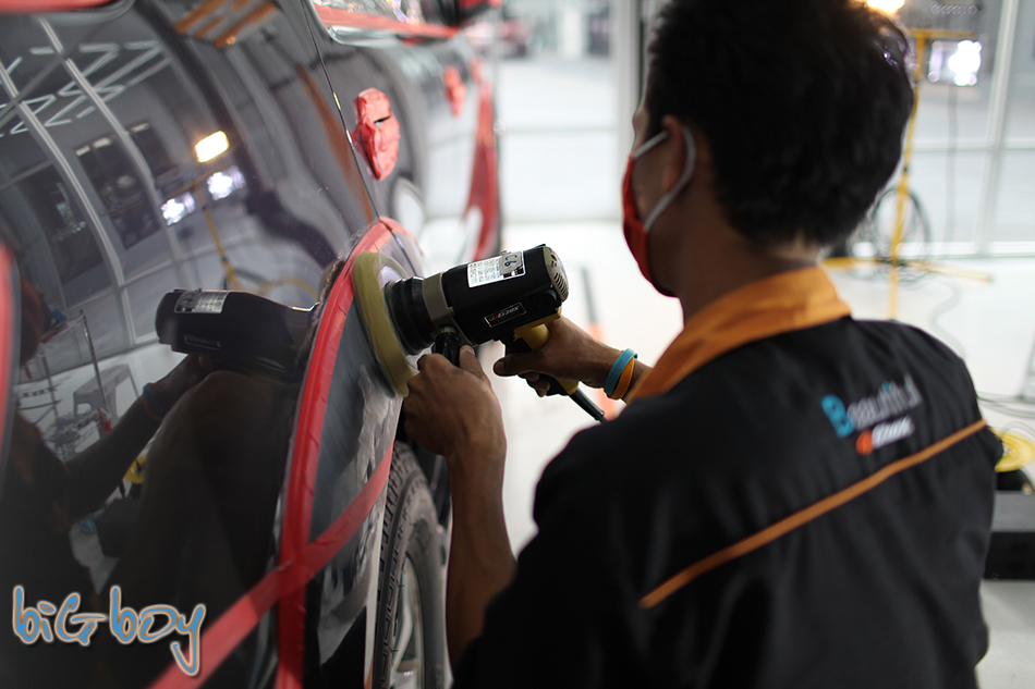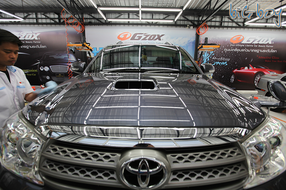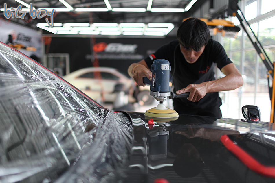 ใกล้จะเรียบร้อยแล้วฮะ เมื่อเคลือบน้ำยาเสร็จทั้งคันก็จะต้องทำอีกหนึ่งขั้นตอนสุดท้ายฮะ