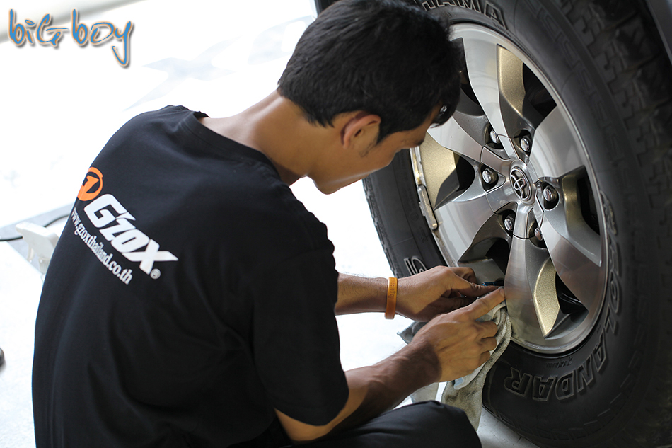 พนักงานอีกคนก็ใช้น้ำยาทำความสะอาดล้อและแม็กซ์ให้ด้วยครับ เรียกได้ว่าหล่อทั้งคันเลยทีเดียว