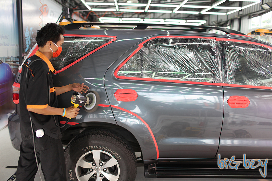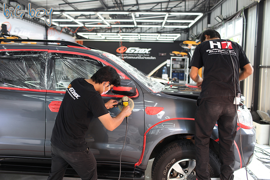 เมื่อเสร็จในขั้นตอนนี้แล้วก็นำรถเข้าไปที่ห้องขัดเคลือบเพื่อเตรียมผิวขั้นต่อไปครับ
