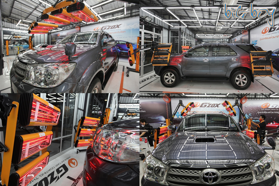 ขั้นตอนสุดท้ายจะเรียกว่าเป็นการอบน้ำยาก็ว่าได้ฮะ ขั้นตอนนี้จะมีเครื่องอบความร้อนด้วยรังสีอัลตร้าไวโอเลตมาตั้งตามจุดต่างๆของรถเพื่อใช้ความร้อนในการอบน้ำยาให้แห้งและติดทนกับผิวรถครับ
