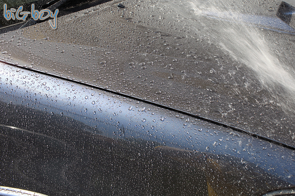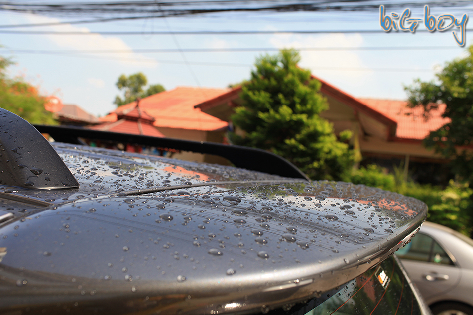 จะเห็นว่าน้ำที่โดนผิวรถจะเป็นเม็ดไม่จับผิวรถ