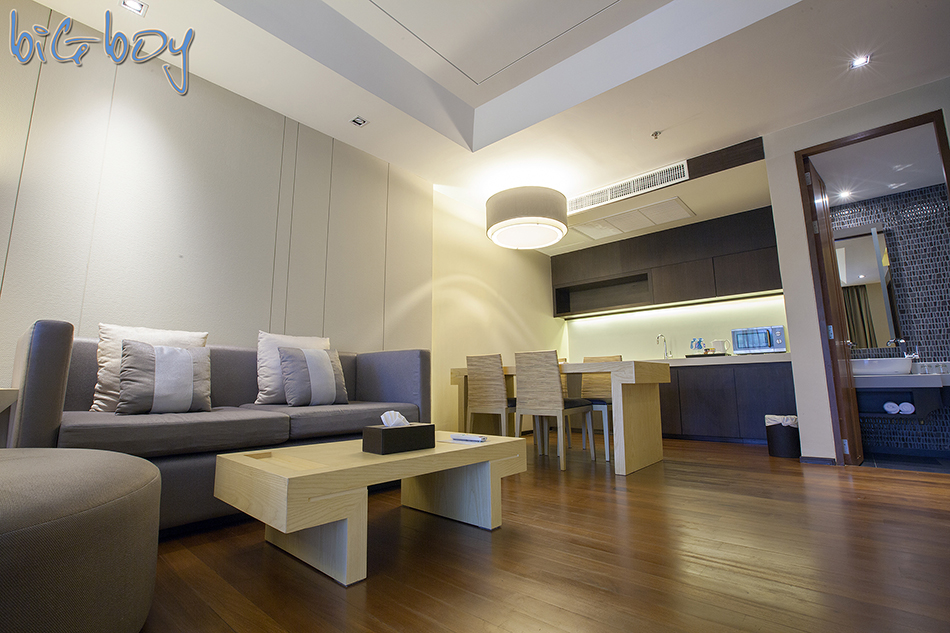 ห้องใหญ่ขนาด 91 ตร.ม เป็นห้องที่แบ่งออกเป็นสองส่วนครับ คือส่วนแรกเข้ามาเป็นห้องนั่งเล่น พร้อมครัว
