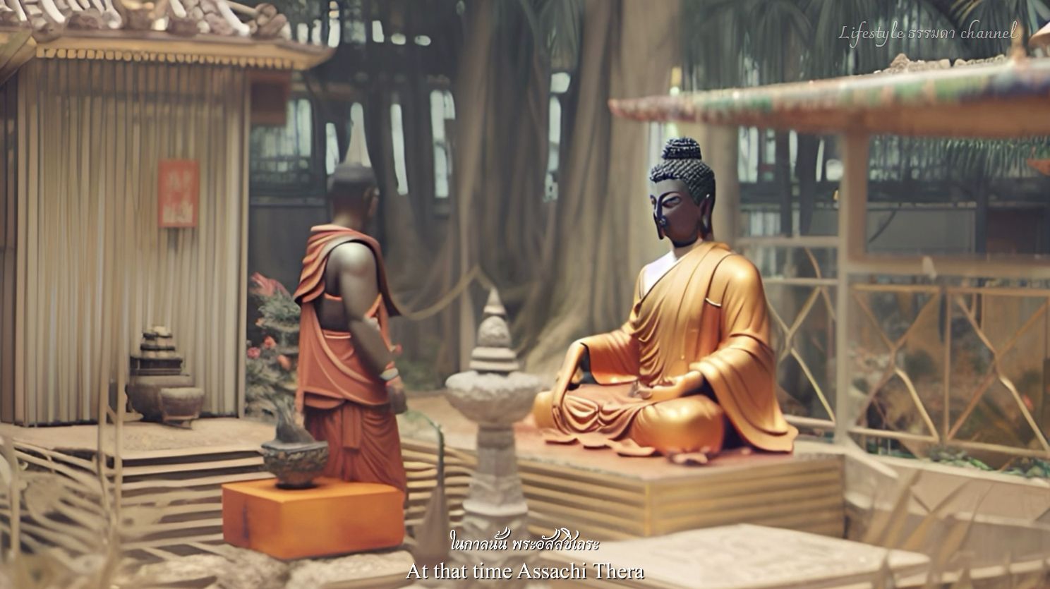 พระอัสสชิได้แสดงธรรมของพระผู้มีพระภาคตามที่สารีบุตรปาริพาชกขอ ว่าธรรมเหล่าใดเกิดแต่เหตุ พระตถาคตทรงแสดงเหตุแห่งธรรมเหล่านั้น และความดับแห่งธรรมเหล่านั้น ดวงตาเห็นธรรม ได้เกิดแก่สารีบุตรปาริพาชกว่า สิ่งใดสิ่งหนึ่งมีความเกิดขึ้นเป็นธรรมดา สิ่งนั้นทั้งมวลมีความดับเป็นธรรมดา บรรลุพระโสดาบัน