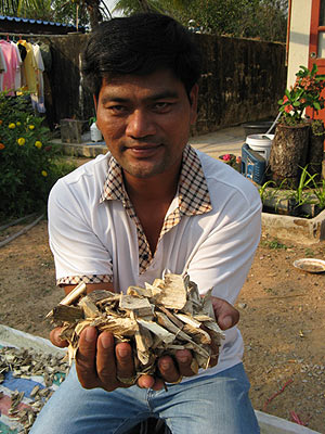 กากกฤษณาหลังจากการกลั่น ใช้ทำผงธูปหอม เครื่องป้นต่างๆ