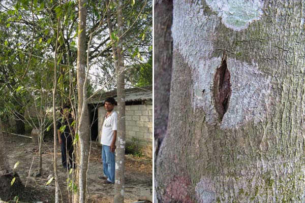 ต้นกฤษณา และรอยแผลที่อยู่ตามลำต้นเป็นส่วนที่จะตัดไปสกัด