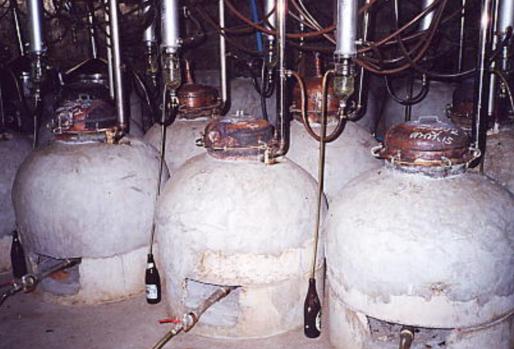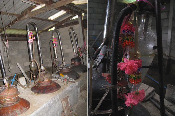 หม้อต้มไม้กฤษณาที่ผ่านการหมักแล้ว และไอระเหยจะกลั่นตัวออกมาเป็นน้ำมันหอม