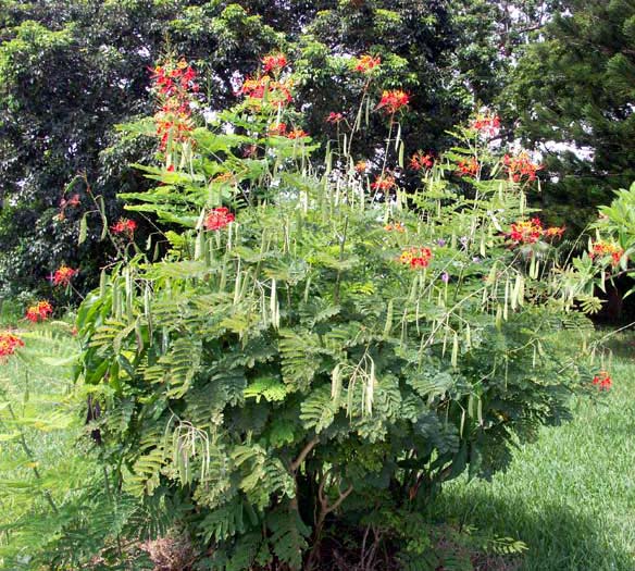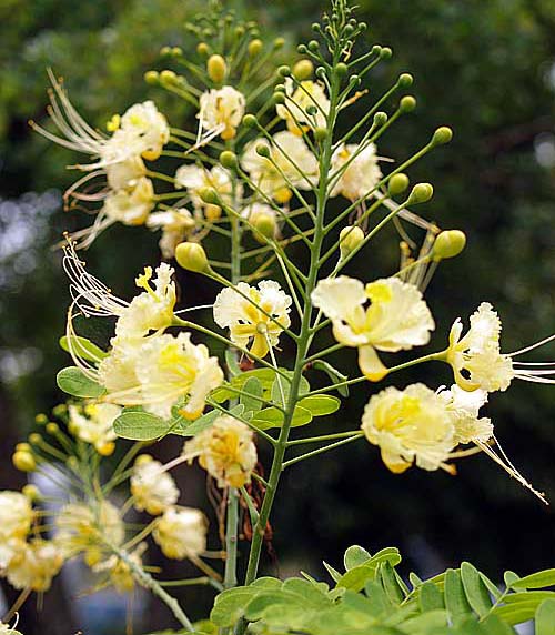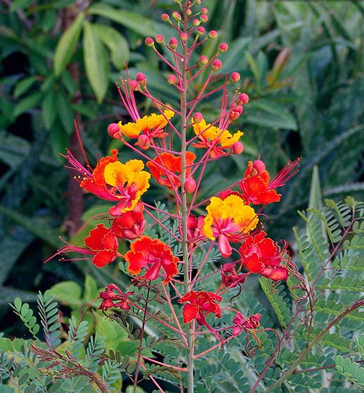 หางนกยูงไทยมีชื่อพฤกษศาสตร์ว่า Caesalpinia pulcherrima ชื่อสามัญคือ Barbadose Pride, Dwarf Poinciana