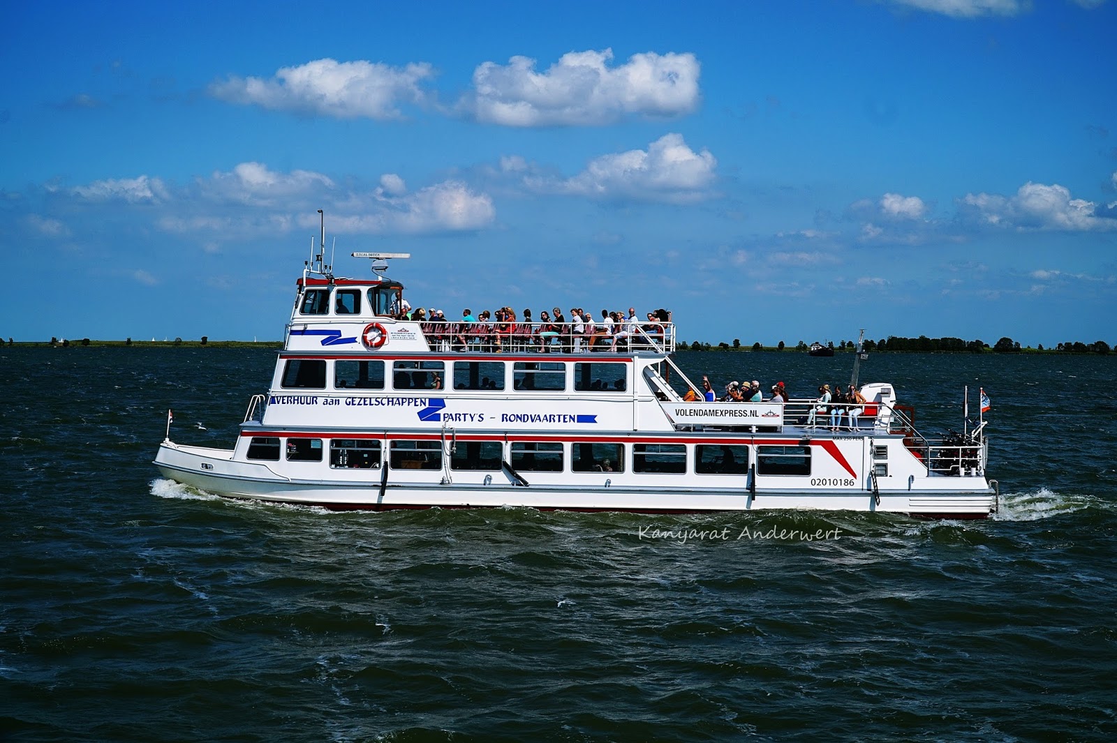 เรือที่ข้ามเกาะหน้าตาคล้ายแบบนี้ ลมแรงลมพัดผมกระเจิง แต่ถ้าใครไม่ชอบโต้ลมก็มีห้องที่กระจก เห็นวิวได้เหมือนกัน มาถึงเกาะเห็นบ้านน่ารักแบบนี้เรียงเป็นทิวแถว สวยมาก ขับรถกลับอัมเตอร์ดัม สมเป็นทัวร์ชะโงกของแท้ ขนาดมากันเองนะนี้ยังดูอย่างละนิดละหน่อย