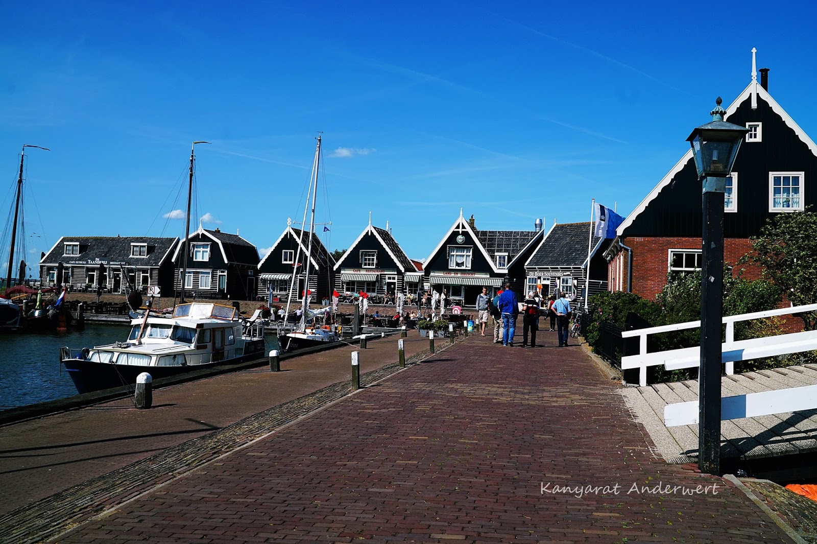 ไปถึงปุ๊บหาที่นั่งกินข้าวก่อนเลย หิวมาก ไม่ได้กินอะไรมาตั้งแต่เช้า ได้แค่กาแฟในรถไฟ กองทัพต้องเดินด้วยท้อง ขนาดของกินยังไม่ได้ถ่ายมาเลย หิวจัด 55 กินอิ่มก็คุยกันว่าอยากข้ามไปเที่ยวเกาะใกล้ๆนี้ ชื่อเกาะ Marken แต่สามีเพื่อนรักไม่อยากนั่งเรือ เราเลยต้องแยกกันไปเที่ยว