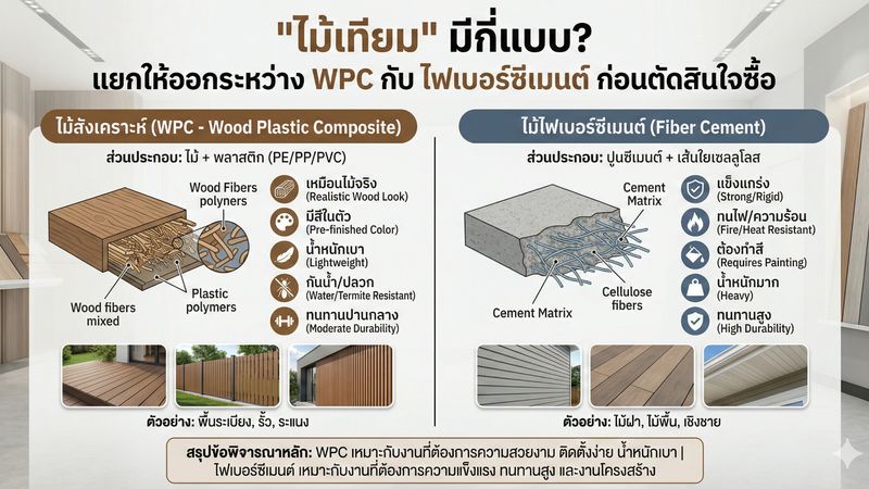 "ไม้เทียม" มีกี่แบบ? แยกให้ออกระหว่าง WPC กับ ไฟเบอร์ซีเมนต์ ก่อนตัดสินใจซื้อ