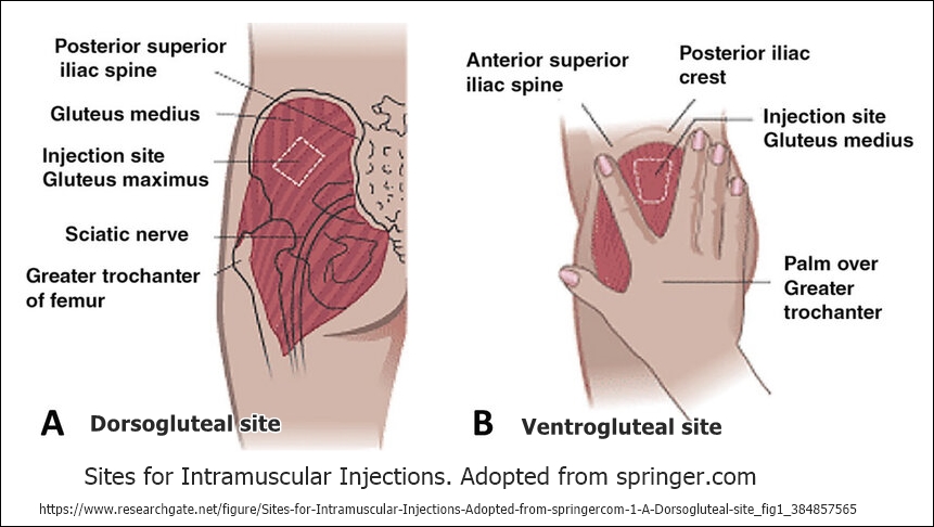 การบาดเจ็บเส้นประสาทไซเอติก (sciatic nerve injury) จากการฉีดยาเข้ากล้ามเนื้อสะโพก (ถ้าเปลี่ยนตำแหน่งฉีด ปัญหาก็น้อยลง)