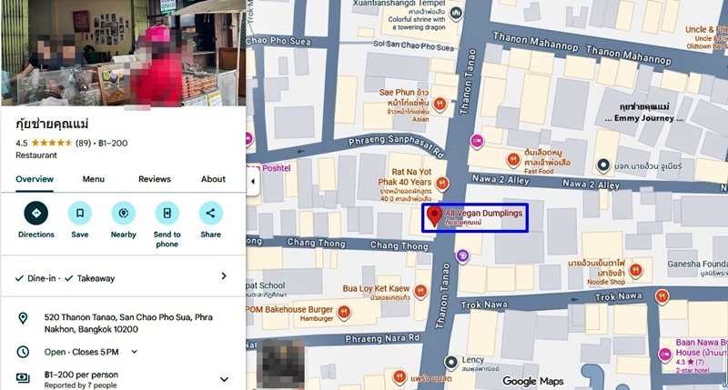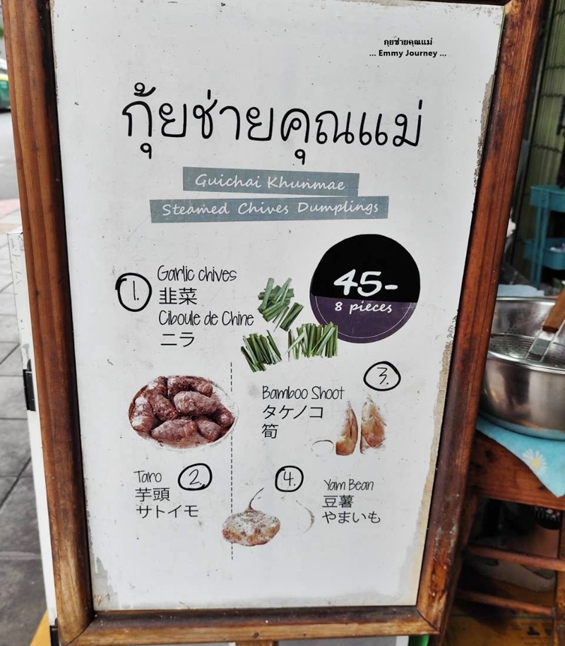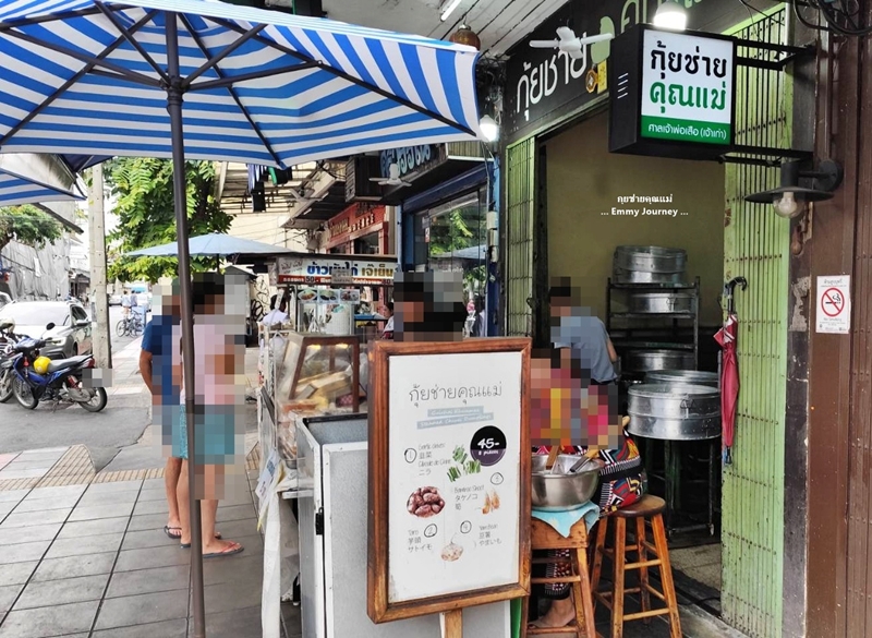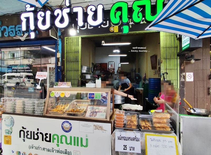 ร้านกุยช่ายคุณแม่ เจ้าดังละแวกศาลเจ้าพ่อเสือ ร้านตั้งอยู่ที่ถนนตะนาว ศาลเจ้าพ่อเสือ กรุงเทพมหานคร เปิดขายทุกวันตั้งแต่เวลา 6.00-17.00 น. ขายทั้งกุยช่ายนึ่งและกุยช่ายทอด ไม่มีที่นั่ง ซื้อกลับบ้านได้อย่างเดียว ร้านกุยช่ายเดินถัดมาจากร้านราดหน้ายอดผักสูตร 40 ปี แค่ 2 คูหา ก็จะถึงร้านกุยช่ายคุณแม่ (แถวนั้นจะเป็นตึกแถว 3-5 ชั้น เปิดหน้าตึกชั้น 1 ขายของบาง เป็นร้านกาแฟบ้าง เป็นคลีนิคบ้าง) ไม่มีที่จอดรถ หาจอดได้ริมถนน ขอบคุณภาพแผนที่ร้านจาก Google Mapปั้นและนึ่งสดๆ ภายในร้านเลยกุยช่ายทอดแบบก้อนสี่เหลี่ยมกุยช่ายทอดแบบเกี๊ยวก็มีกุยช่ายนึ่ง 1 กล่อง มี 4 ไส้ ราคากล่องละ 45 บาท ได้ 8 ชิ้นมีไส้กุยช่าย / ไส้มันแกว / ไส้เผือก และไส้หน่อไม้เราชอบนะ ไส้แน่นแป้งบาง แป้งห่อกุยช่ายบาง ไม่หนา ส่วนตัวเป็นคนที่ไม่ชอบทานกุยช่ายแป้งหนา น้ำจิ้มรสชาติกลางๆ ไม่เปรี้ยว ไม่เผ็ดจนเกินไป